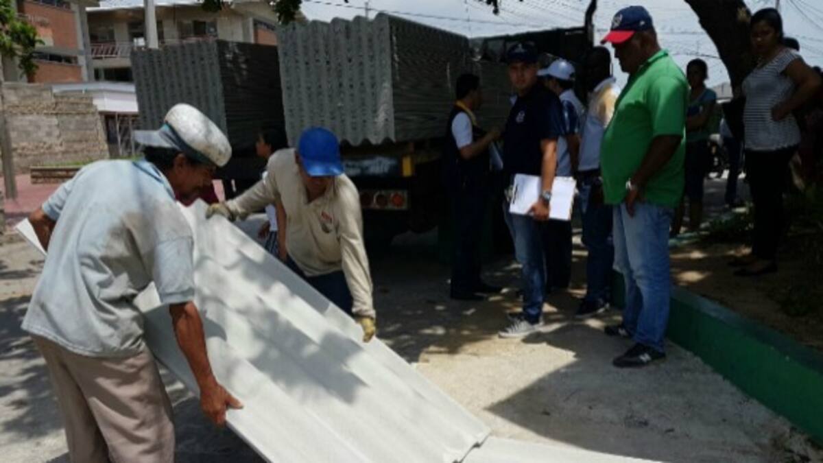 A las familias afectadas en sus viviendas por las lluvias y fuertes brisas del lunes en horas de la tarde se les han entregado materiales, especialmente 1.779 láminas, 75 caballetes y 1.800 bloques.
