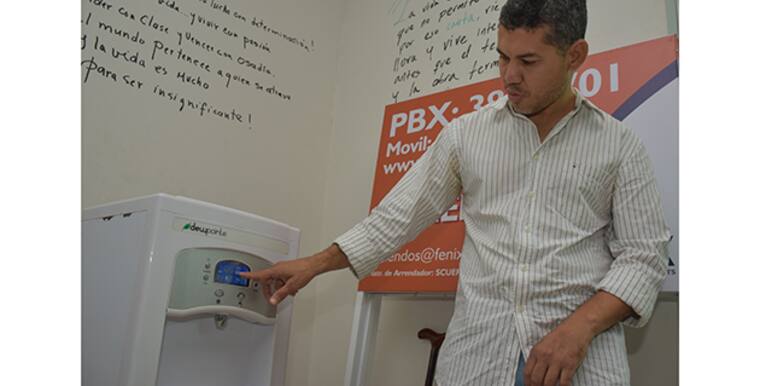 Con el rostro iluminado con una franca sonrisa, explicó que las máquinas más pequeñas, solo con conectarlas, producen 40 litros de agua por día y tienen un valor de 1.600 dólares. 'Las hay más grandes que producen 5.000 litros día y cuestan 350.000 dólares. Este es un proyecto muy bonito. Imagínese un máquina de esas en una ranchería en La Guajira', recalcó.