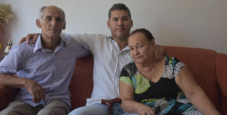 Francisco Anaya, su padre, Cristian y su madre Nury Durán, en la sala de su casa.
