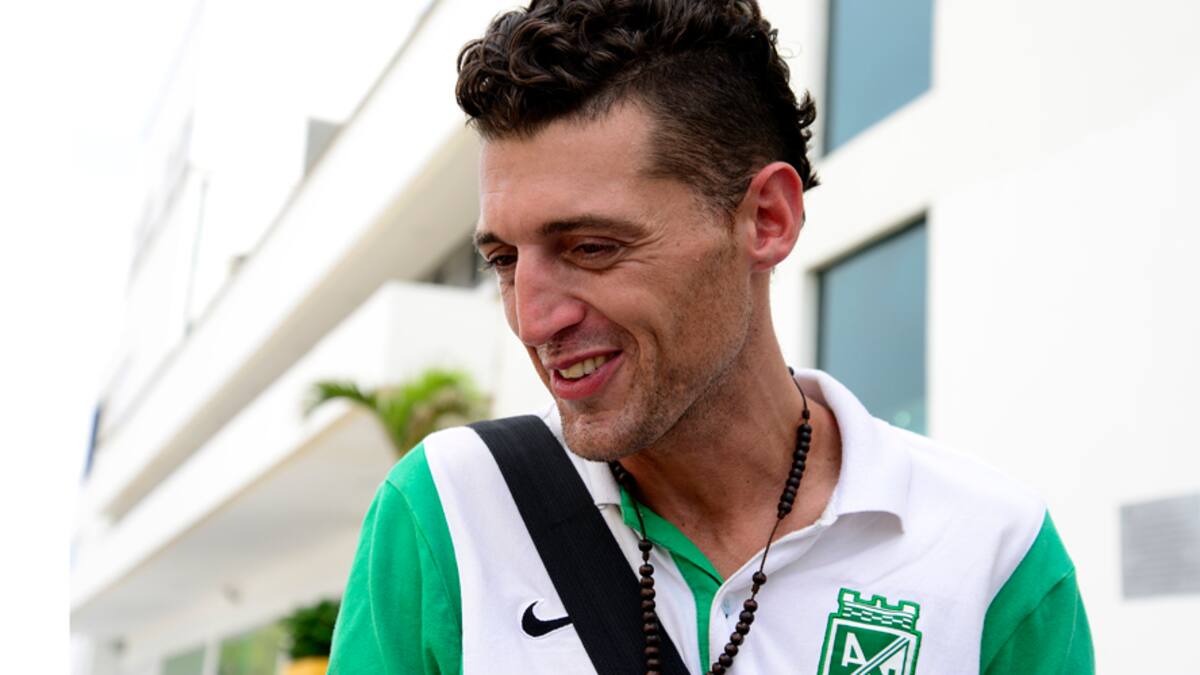 A simple vista, cualquier persona creyera que se trata de un paisa a la espera de ver al azulgrana Luis Suárez o al defensor de Atlético de Madrid, Diego Godín, pues Pérez porta con orgullo una camiseta blanca con verde del Atlético Nacional, pero finalmente su acento lo delata.