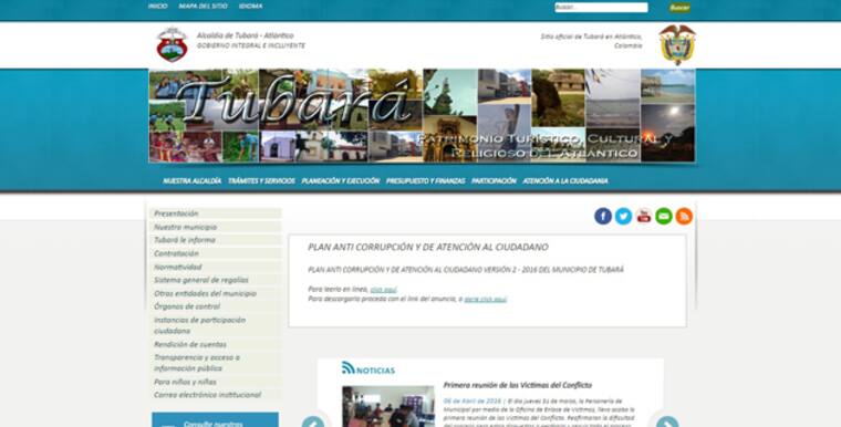El sitio virtual de la Alcaldía de Tubará carece de publicaciones de contratación, tampoco registra un POT vigente (hay uno del 2001 -2010), y el último Plan de Desarrollo que subieron fue el de 2012-2015.