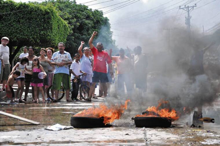 Con arengas y llantas quemadas habitantes de la calle 48 con carrera 23, en límites de los barrios Alfonso López y San Isidro, protestaron porque a su parecer, los trabajos complementarios de las obras del sistema de transporte masivo, en la calle 51 con carrera 22, produjeron daños en la red de alcantarillado.