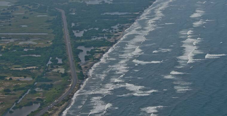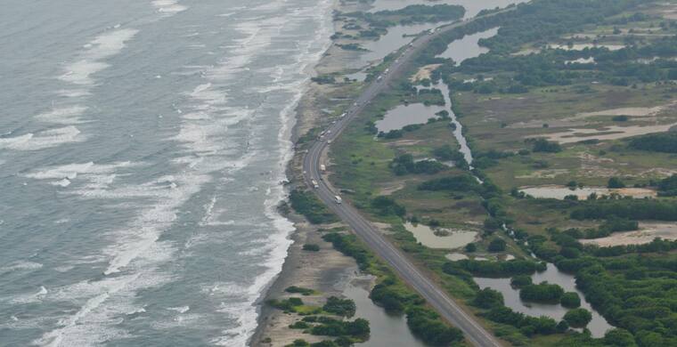 Así luce el kilómetro 19, en la vía que conduce de Barranquilla a Santa Marta, como consecuencia de la erosión costera que amenaza con afectar esta importante carretera.