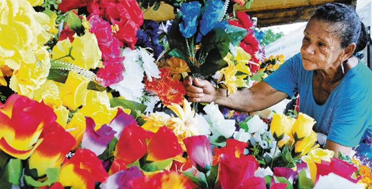 Con 23 años en el negocio, se aventura a arrojar ese cálculo. Dice que en 'días malos' puede obtener ganancias de 50.000 pesos por esas flores que honran la eternidad.