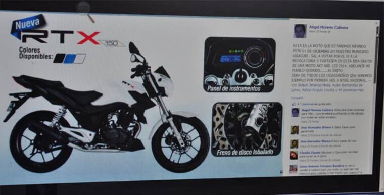 Por Facebook promueven el Sí con la rifa gratis de una moto.