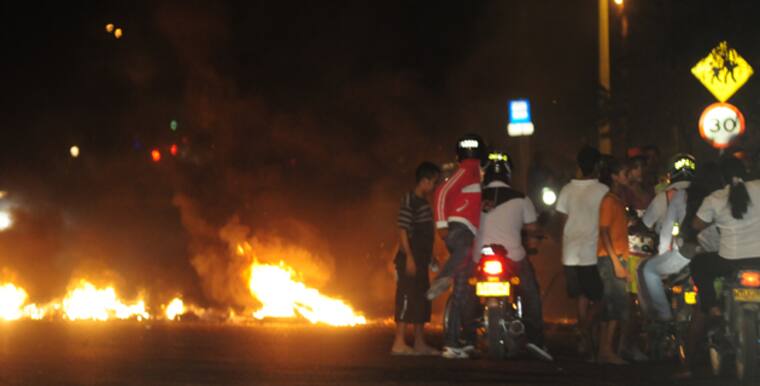 Desde la 5:00 p.m. cerca de 100 personas, residentes de Villa Carmen, llegaron hasta la calle Murillo en la vía a Granabastos, entre la entrada a los Barrios Manantial y Terranova, y con palos, llantas y candela cerraron el paso de vehículos. Solo las motocicletas podían pasar, no sin antes pagar a los manifestantes por ese privilegio.