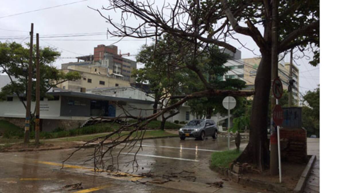 En la calle 90 con carrera 50, EL HERALDO constató la caída de varias ramas de árboles secos. De igual manera, varios fueron los arroyos que se formaron como producto de la lluvia.