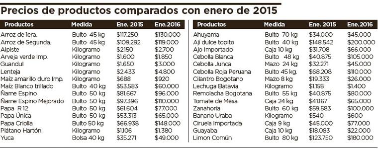 El comerciante mayorista Wilson Prada, asegura que desde el primer día del año empezó a palparse el alza de varios productos. En este momento, con base en su declaración, alimentos como el arroz y los granos registran un incremento que sobrepasa el 10 %.