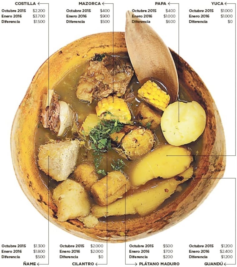 EL HERALDO comparó por libras los precios de los componentes del tradicional plato con los de hace tres meses. Con el precio de una libra de cada ingrediente se obtiene que un sancocho de costilla, mazorca, yuca, papa, fríjol seco, plátano, zanahoria y habichuela costaba, en promedio, $35.400.