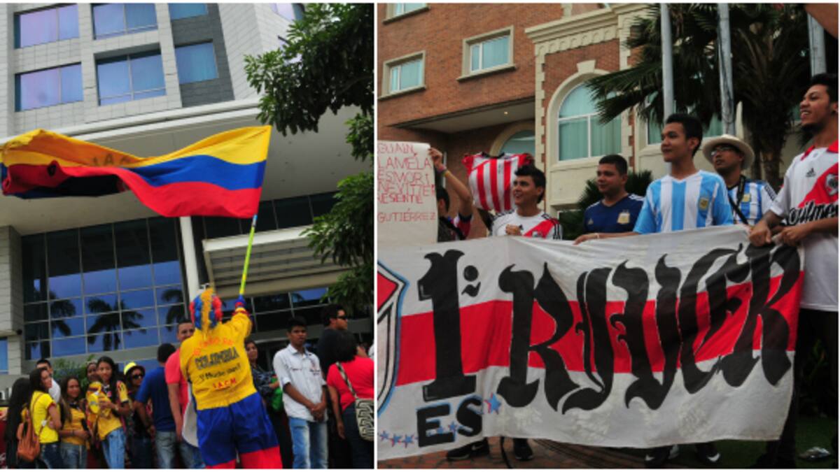 Aunque frente al hotel Dann Carlton, en donde se encuentra hospedada Argentina, la actividad no era la misma que en el otro hotel, varios hinchas de la albiceleste alentaban a los jugadores ataviados con camisetas del River Plate, trapos y banderas. Lo más curioso es que la mayoría de los fanáticos no provenían precisamente de la tierra del choripán. Muchos de ellos son barranquilleros, paisas o de cualquier otro lugar de este país del Divino Niño, en donde para gustos no hay disgustos, como reza el adagio popular.