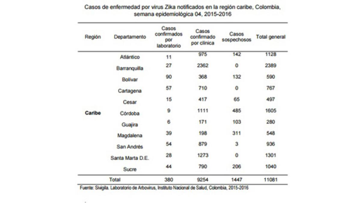 Según el último boletín epidemiológico del Instituto Nacional de Salud (INS), ya son 25.645 casos de zika en todo el país, desde la confirmación del virus en Colombia hasta la cuarta semana del 2016. De ese total 2.667 se presentan en mujeres gestantes, y Barranquilla se mantiene entre los municipios más afectados.