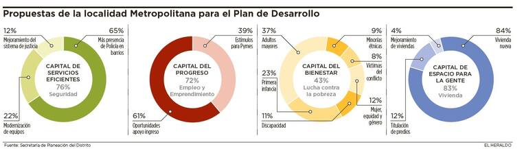 Resultados por ejes. Con base en los datos suministrados por la Secretaría de Planeación del Distrito, en el eje ‘capital del bienestar social’, el 43% de los participantes de la localidad Metropolitana manifiesta que es de vital importancia encaminar esfuerzos en lo correspondiente a la lucha contra la pobreza.