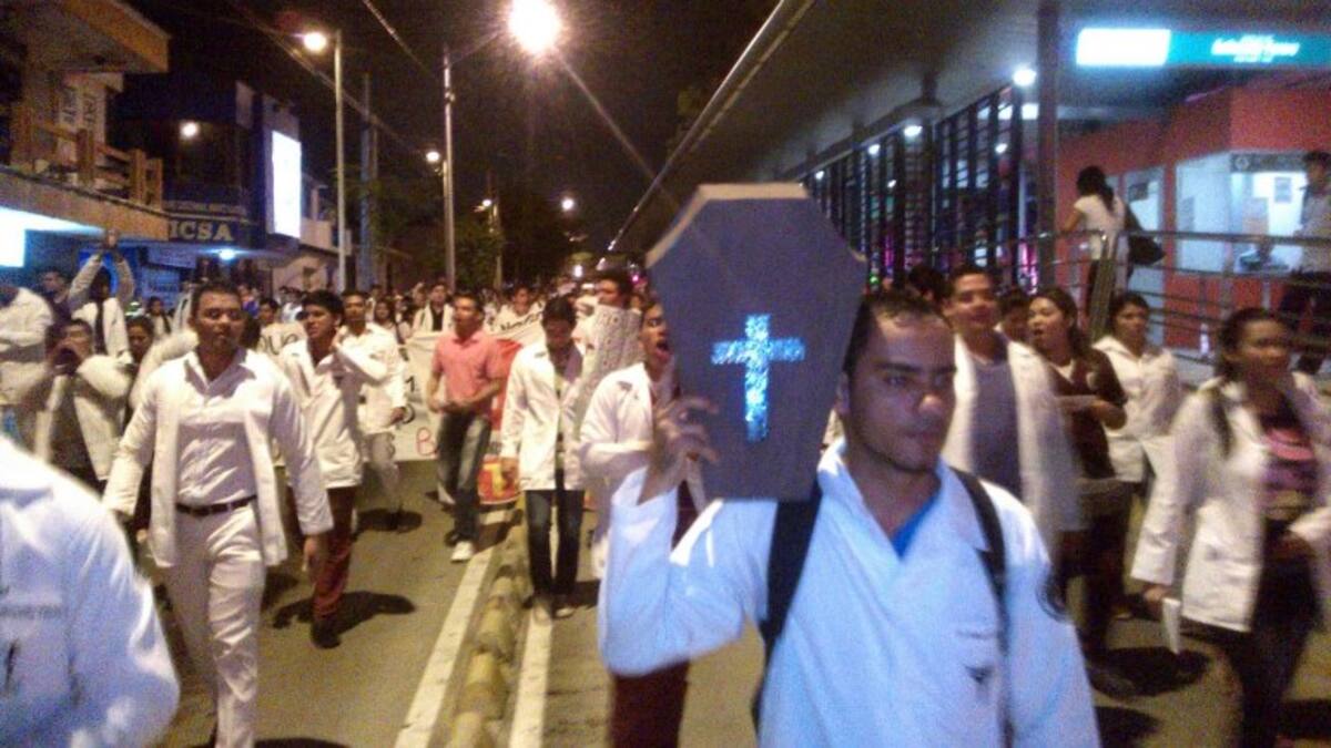 Gritando consignas en contra del presidente de la República y, en general, de repudio a la reforma a la Salud, profesionales de la medicina y estudiantes protestaron en una marcha pacífica por toda la avenida Olaya Herrera.
