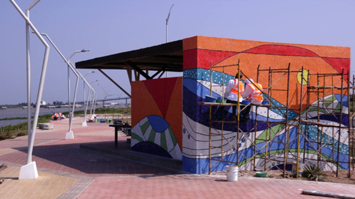 Bancas y casetas están siendo transformadas una a una, con la elaboración de diseños que a través de la técnica del mosaico evocan el brillo del sol de La Arenosa, el encuentro del río con el mar y los destellos de la luna que inspiró la letra de varias de las canciones de Esthercita Forero.