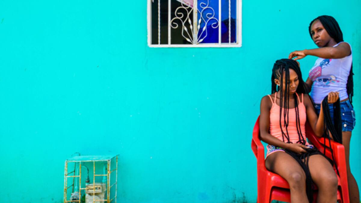 Dentro de una de las casas coloridas, teñida de un azul aguamarina, dos primas trenzan y trenzan, de tres en tres, para dejarse listas, 'regias y bien lindas'.