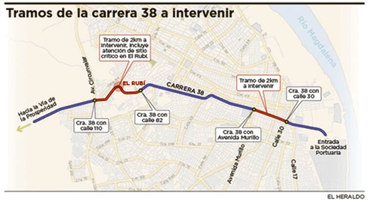 Dos meses atrás, cuando se anunció la apertura de licitación de este proyecto, Invías y el Ministerio de Transporte indicaron que los trabajos para la carrera 38 contemplan el mejoramiento, gestión predial, social y ambiental de 14,5 kilómetros de la vía, y contará con una inversión de $100 mil millones (obra e interventoría). El plazo de ejecución es de 48 meses.
