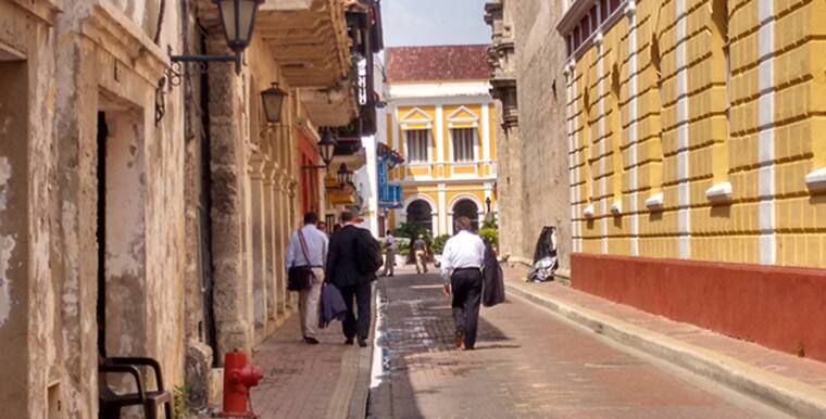 A esa misma hora, en la calle San Juan de Dios, en el centro fortificado, unos extranjeros caminaban de sacos y corbatas, tras salir de una reunión, y ante la mirada horrorizada de los vendedores ambulantes que estaban literalmente ahogados por el calor reinante y no se explicaban cómo aquellos venidos de otros lares podían andar campantes con esas vestimentas de otros climas.