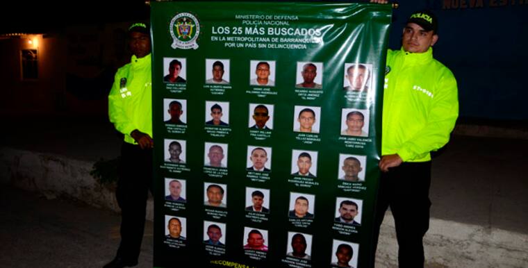 En la lista de los 25 más buscados por la Policía Metropolitana de Barranquilla están: Jorge Eliécer Díaz Collazos, alias ‘Castor’; Luis Alberto Marín Gutiérrez, alias ‘Coche; en Dgino José Palomino Rodríguez, alias ‘Dino’; Ricardo José Álvarez Suáres, alias ‘Ricardito‘; Augusto Ortiz Jiménez, alias El indio; Dionisio Enrique Frías Castillo, alias ‘El gordo 40’; Jonathan Alberto Navas Pimienta, alias ‘Frijolito’; Danny William Fría Castillo, alias ‘Danny’; Juan Carlos Téllez Márquez, alias ‘Jhon’; Jhon Jairo Valencia Monterrosa, alias ‘Care colla’; Alexander Uriel Bustamante, alias ‘El bambi’; Francisco Javier López De la Cruz, alias Corozito; Meytang José Ramírez Torres, alias ‘Meytang’; John Freddy Rodríguez Morales, alias El gordo; Erick Mario Sánchez Vázquez, alias ‘Santiago’; Jaime Roberto Bobb De la Rosa, alias ‘Jimmy’, Ricardo Rodolfo Moreno Pint, alias ‘Indio’; Julio César Restrepo Arias, alias ‘Julito’; Carlos Arturo Núñez Ortiz, alias Carlos; Fabio Andrés Rendón Alegría, alias ‘Quema’; Juan Carlos Bonilla Salgado, alias ‘Bonilla’; Jassir Alberto Pérez Pedroza, alias ‘El gato’; Harvey Andrey Mendoza Plata, alias ‘Harvey’; Armando José Sundhein Sarmiento, alias ‘Armando’, y Jayson Jesús Garrido García, alias Jayson.