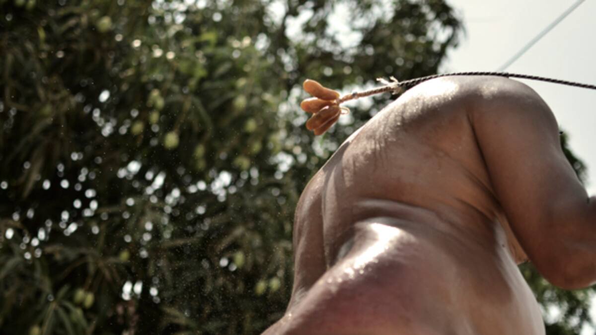 Muriel se azota por su amigo Edwin Truyol, quien paga una penitencia.