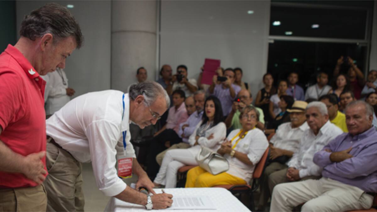Santos sostuvo en una intervención antes de la firma del acuerdo que la paz se construye todos los días y desde las regiones.