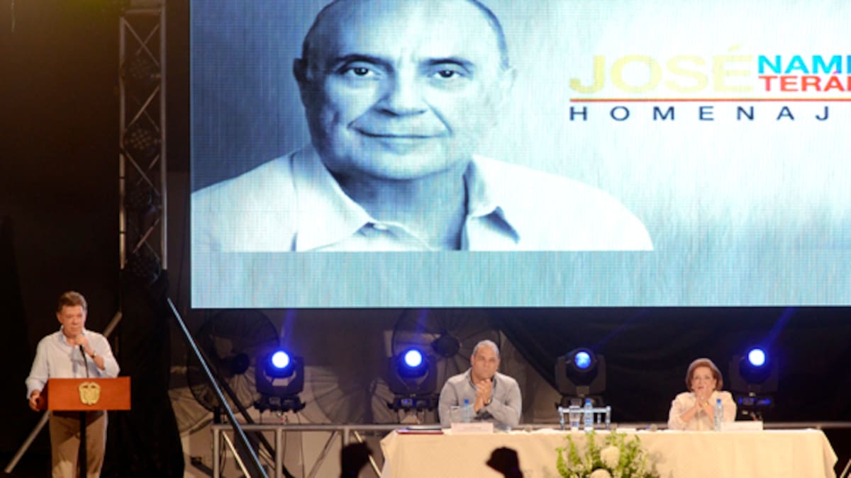 'Vamos a quitarnos esa soga que no nos deja avanzar para gritar: ¡viva la paz!', afirmó ayer el presidente Juan Manuel Santos durante su intervención en el homenaje póstumo al excongresista José Name Terán, quien falleció hace dos años.