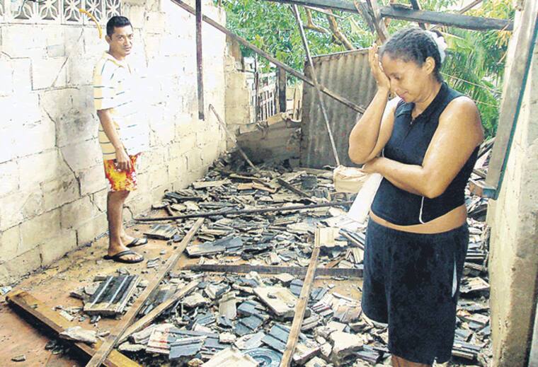Anteayer al medio día, Dalia Cardona se encontraba barriendo el patio de su casa cuando el techo y las paredes de la misma se vinieron abajo como si se tratara de un castillo de arena, dejando la vivienda en ruinas.
