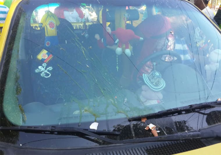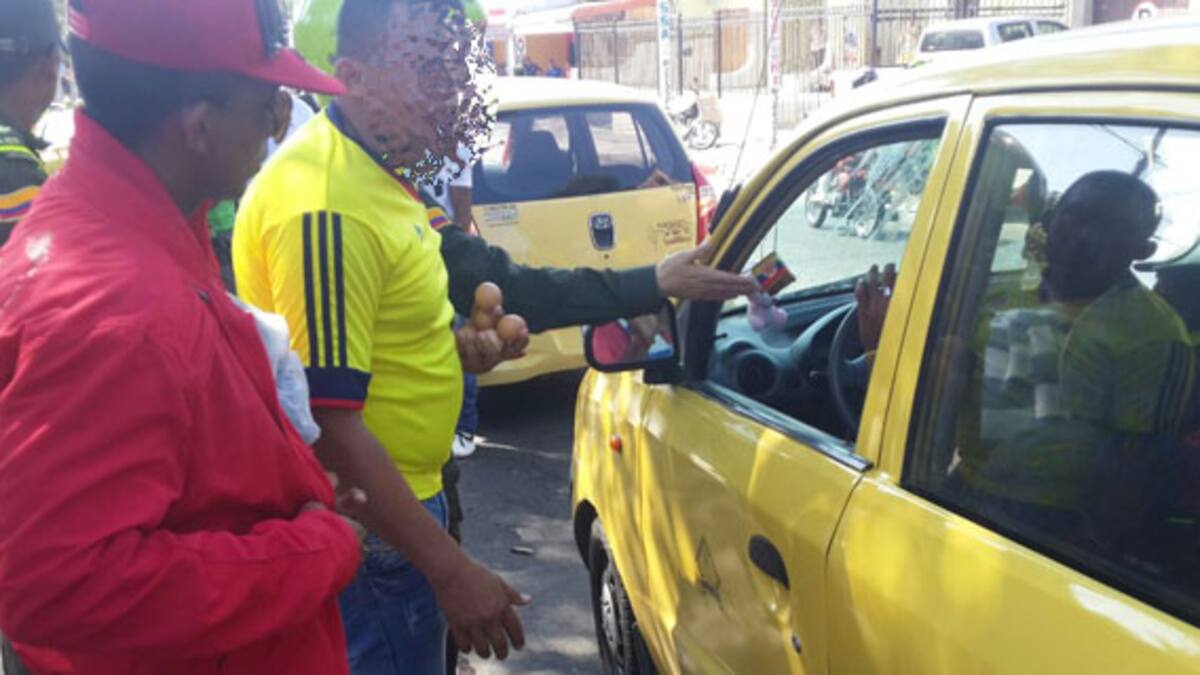 Durante la marcha, los taxistas que se aprovisionaron con huevos los lanzaron hacia los taxis que trabajabaron y no atendieron el llamado de paro.