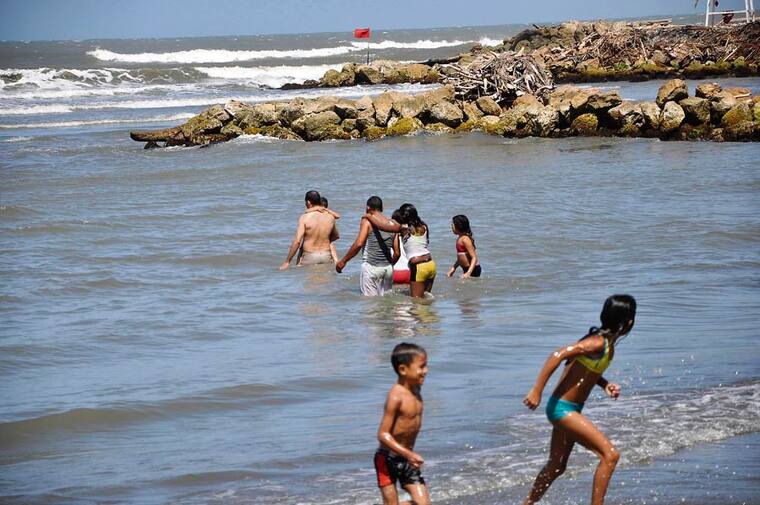 Está de acuerdo con que la gente se bañe en las playas, pero cerca de la orilla y manteniéndose lejos de los espolones, que tienen banderas rojas izadas para indicar el peligro que hay de que alguien choque contra las rocas por los fuertes vientos que alcanzan velocidades de 36 a 45 kilómetros por hora y los oleajes de dos a tres metros de altura.