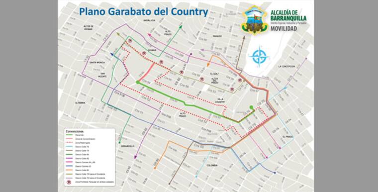 Debido al desfile del Garabato del Country que se realizará mañana 1 de febrero, la Secretaría de Movilidad Distrital y Transmetro anunciaron desvíos y restricciones en varios sectores de la ciudad desde las 5:30 de la tarde.
