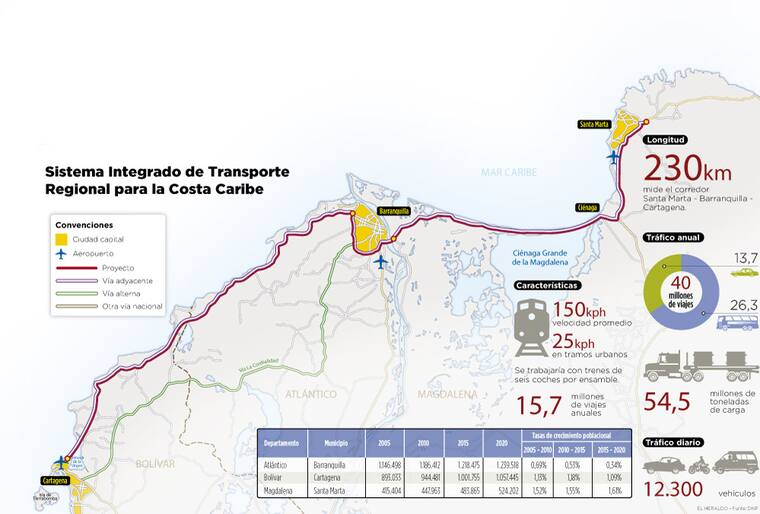 Se proyecta que su construcción tendrá muchos beneficios porque al ser un tren de naturaleza mixta no sólo permitiría la movilización de carga sino también de pasajeros, brindaría una nueva posibilidad de acceso a los puertos de Barranquilla y Cartagena, y además, ofrecería una comunicación más rápida entre esas ciudades.