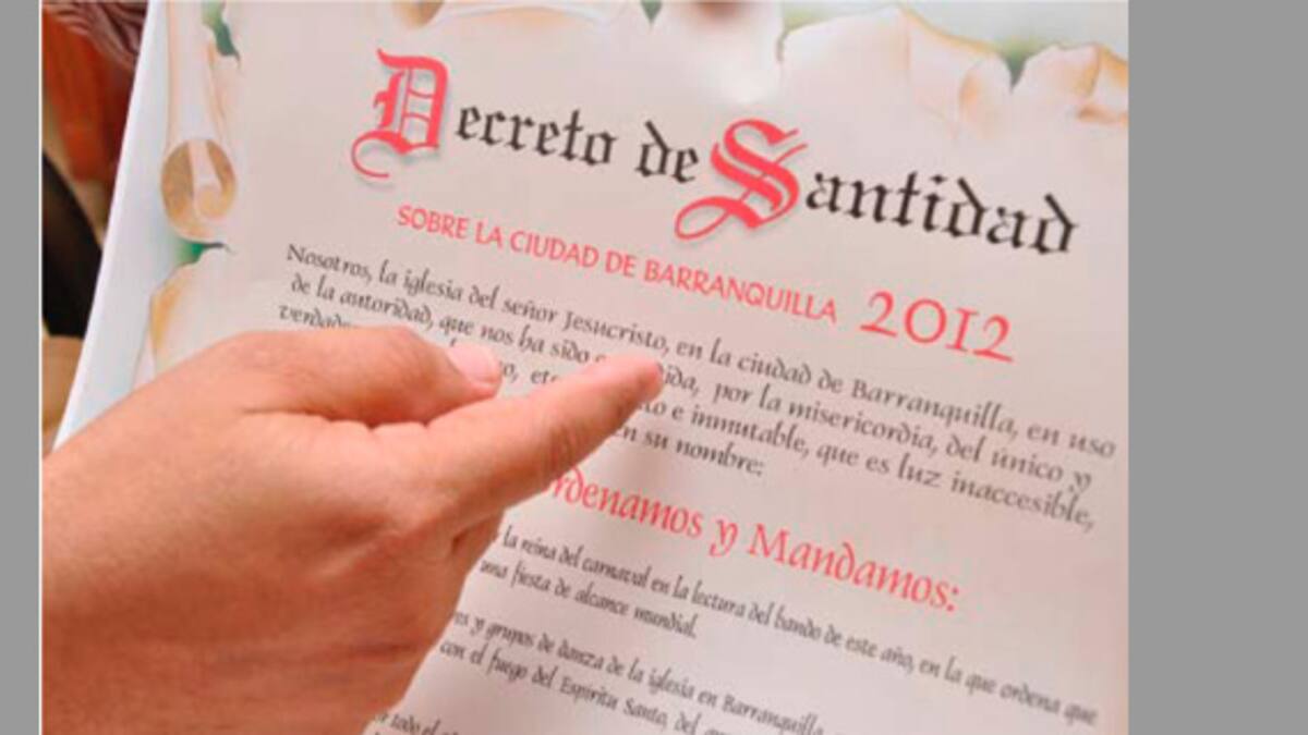 Mientras que a través de un decreto, la reina del Carnaval, María Margarita Diazgranados Gerlein, ordena y manda a los barranquilleros a gozar, bailar y rumbear durante las fiestas carnestoléndicas 'hasta que el cuerpo aguante', la Iglesia Cristiana, como lo ha hecho durante los últimos doce años, leerá un Decreto de Santidad para ponerle su dosis de orden a la ciudad.