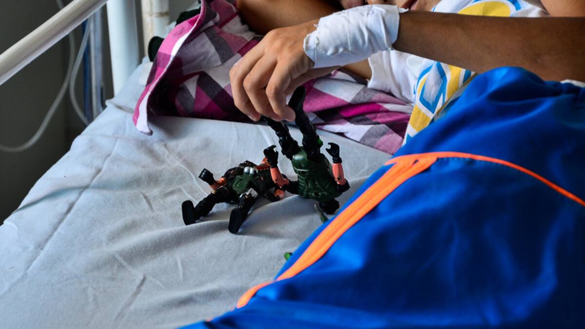 Sumido en un mundo imaginario donde no existen el dolor, nuevas amenaza de explosiones de la pólvora ni la tristeza, el pequeño, que cursa primer grado, es ajeno a la realidad de su caso. Lo único que tiene claro es que no quiere pasar la Navidad en un hospital y que el Niño Dios no lo encuentre tendido en una cama, lejos de su casa en el barrio La Alianza del municipio de Soledad.