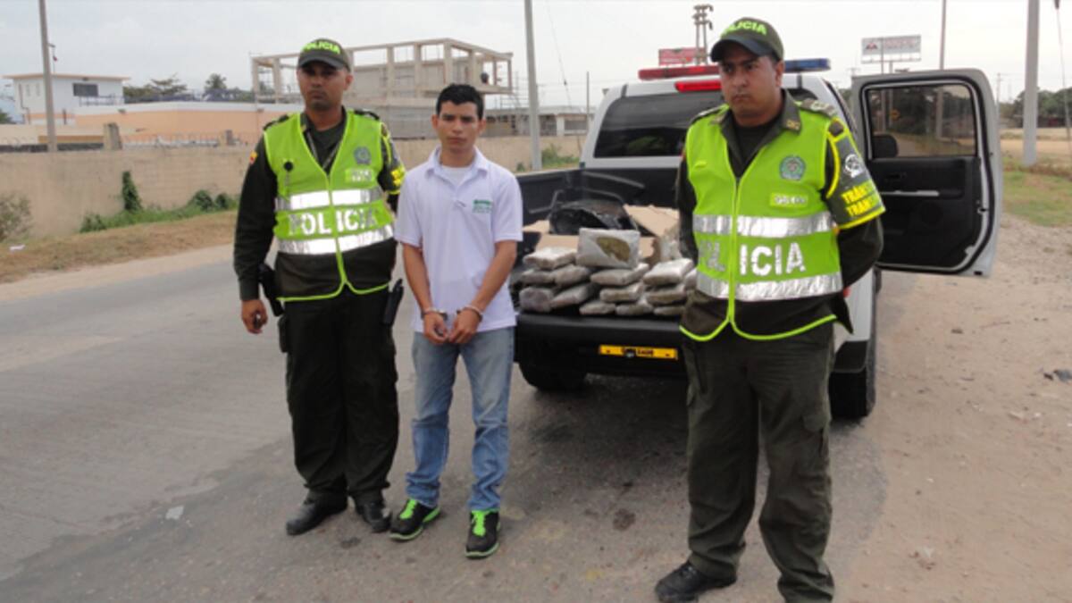 La Polícía del Atlántico capturó este lunes a un joven que responde al nombre de Cristian Jair Villalba Mercado, de 25 años, cuando cumplía funciones de ayudante de un bus interdepartamental que cubría la ruta Santa Marta - Barranquilla en el cual transportaba 18 kilos de marihuana tipo cripy.