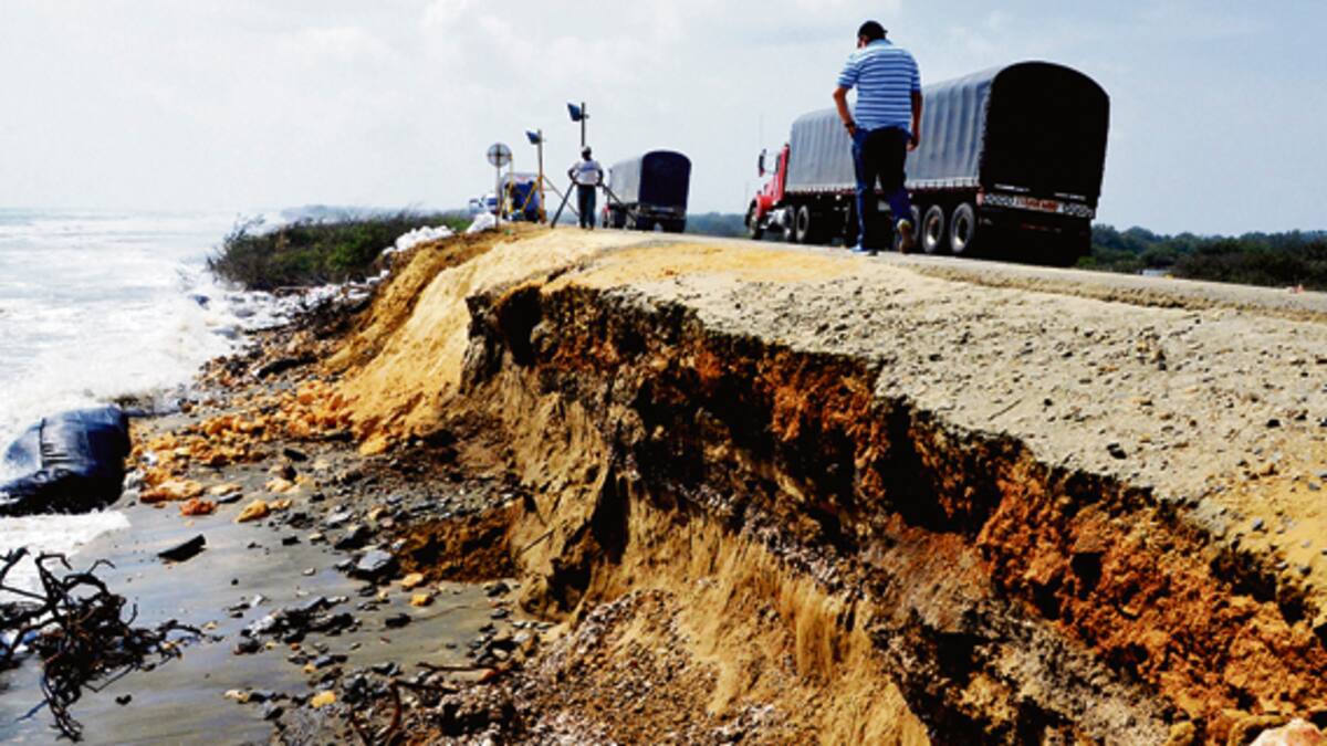 HAY MIEDO. Lucas Mejía, un pescador que a diario realiza su faena en el kilómetro 19 de la vía Barraquilla – Ciénaga, luego de salir de su casa en el barrio Las Nieves de la capital del Atlántico, se asombró al ver que el sábado la erosión había colapsado un tramo del talud de la carretera, que estaba a punto de ser ‘devorada’ por el mar.