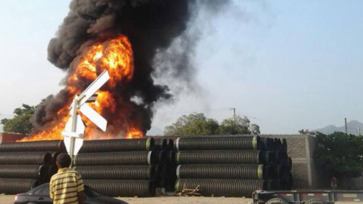 Un incendio de tubos de polietileno y fibra de vidrio causó pánico en la vía alterna al puerto de Santa Marta, en la subida al cerro que conduce al balneario de Taganga. La conflagración habría sido provocada posiblemente por andariegos que frecuentan la zona. Los daños materiales no han sido cuantificados.