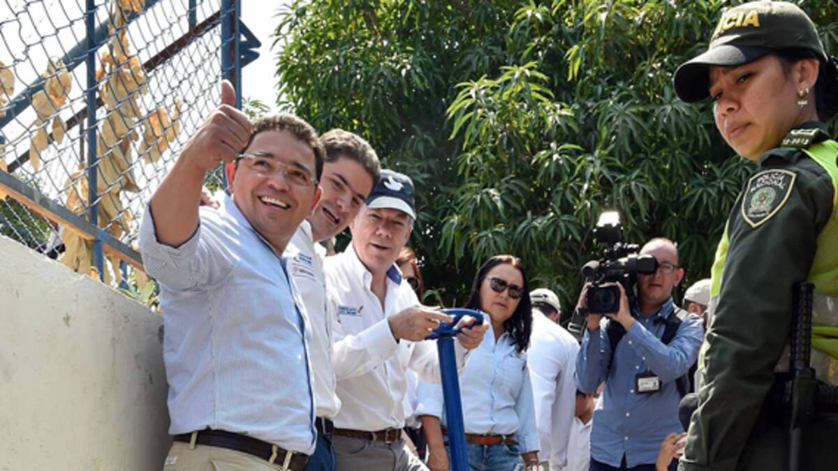 Santos, junto al ministro de Vivienda, Luis Felipe Henao, entregó cuatro nuevos pozos para el Distrito que hacen parte de la batería de 45 pozos acuíferos que se construyen en la ciudad.