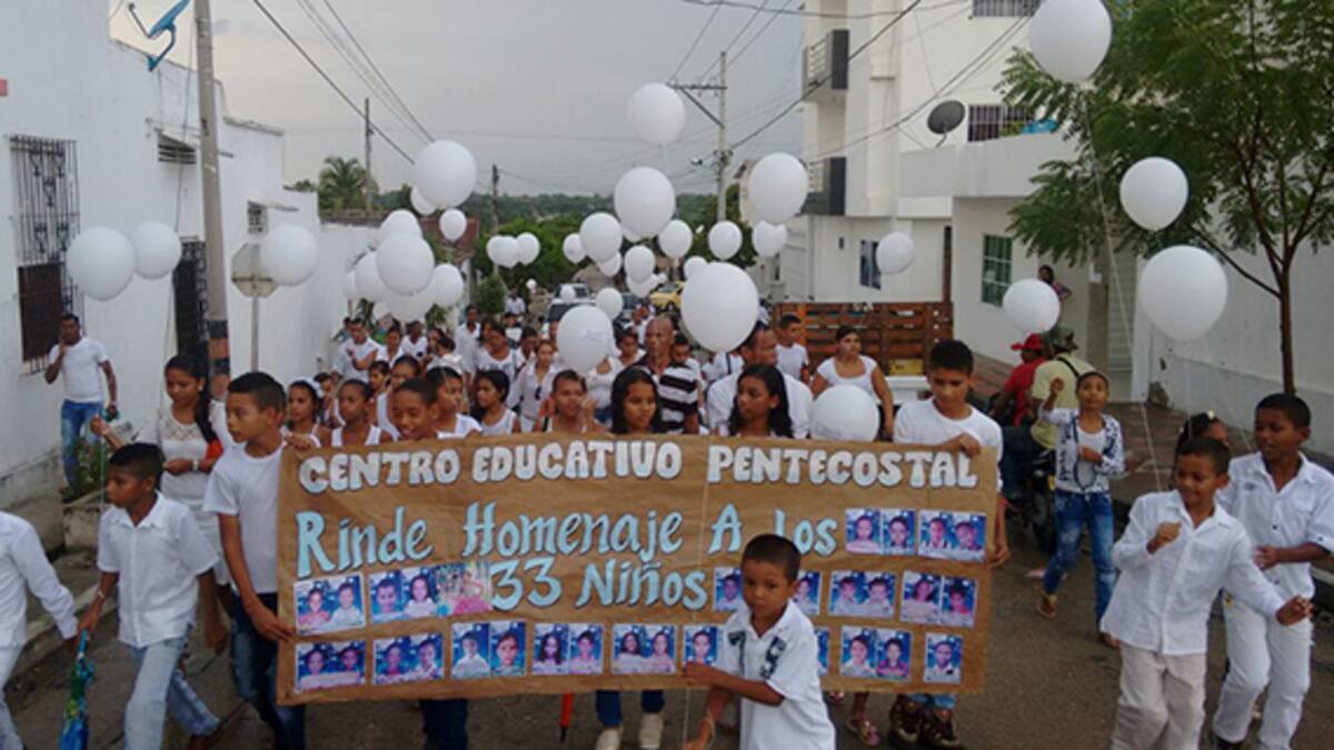 Sin promesas y sin la presencia de funcionarios del Alto Gobierno, pero con el apoyo de un pueblo, Fundación honró la memoria de los 33 niños que hace dos años fallecieron, la mayoría calcinados dentro de un bus. La gobernadora del Magdalena, Rosa Cotes y varios de sus secretarios, acompañaron a los padres de las víctimas.