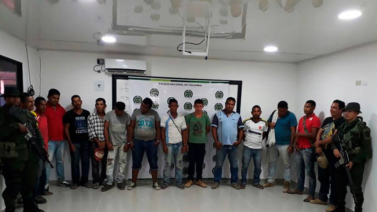 El oficial explicó que entre los detenidos están Idialfonso Muñoz Dávila, de 33 años, natural de Mompox (Bolívar); Jhorman Danilo Valbuena Pereira, de 33, de San Martín (Cesar); Luis Miguel Díaz Fuentes, de 23, de La Jaguas de Ibirico (Cesar); Nilson Josué Arrieta López, de 34, de Santa Ana; Jeisson Javier Pérez Suarez, de 28, de Bosconia (Cesar); Gregorio Antonio Guerrero Luna, de 72, de Mompox; Jorge Luis López Batista, de 32, natural de Talaigua Nuevo (Bolívar); Kevin Antonio Castro García, de 25, de Mompox; Audi Santiago Batista Machado, de 39, de Santa Ana; Manuel Antonio López López, de 47, de Santa Ana; Diego Fernando Villega Pacheco, de 34, de Puerto Boyacá (Santander); Jhony Gómez Muñoz, de 34, de Talaigua Nuevo; Edwin Herrera Morales, de 26, de Mompox; Nicacio Muñoz Mejía, de 51, de San Sebastián(Magdalena), y Alcides Cadena Villalobos, de 58, de El Banco.