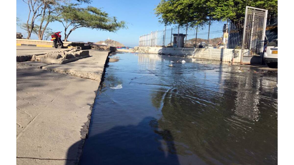 El olor nauseabundo se percibe con intensidad sobre la carrera primera, frente a la playa, en donde en un sector las aguas pútridas desembocan al mar.
