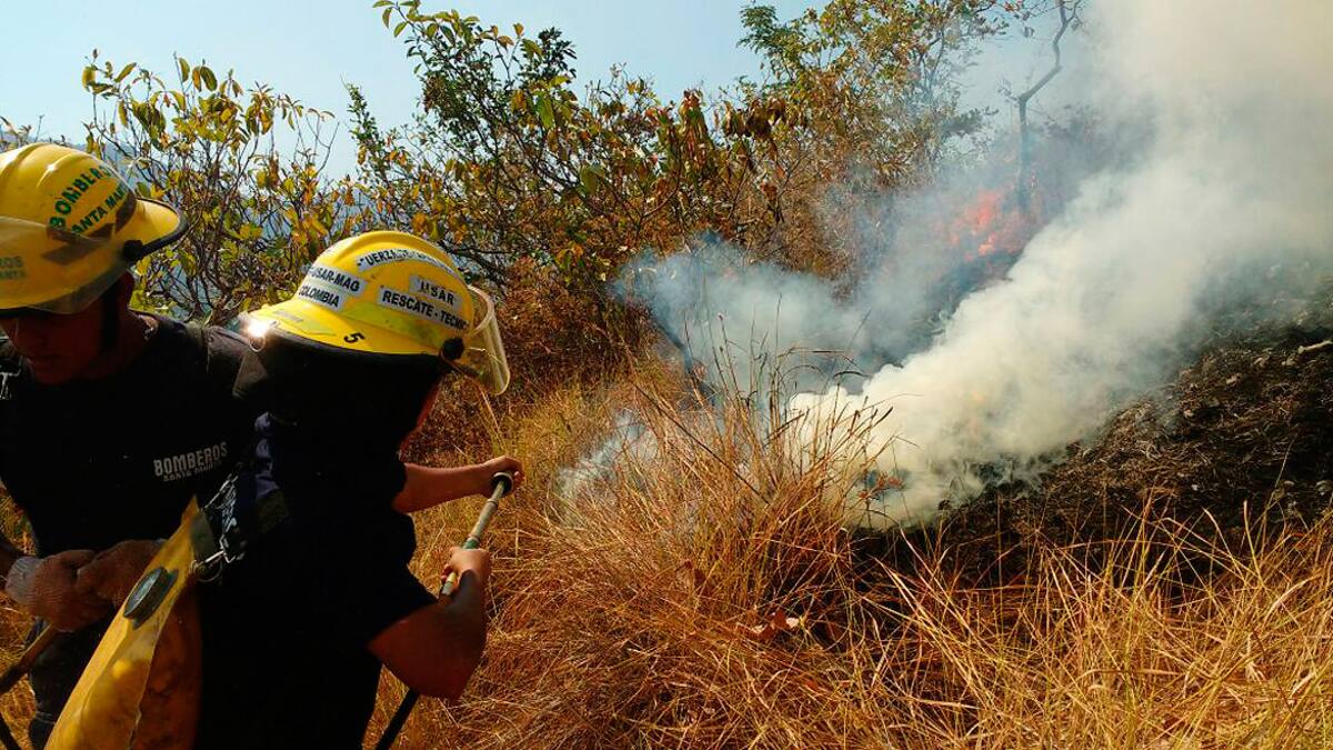La conflagración es combatida por 25 unidades del cuerpo de bomberos voluntarios de Santa Marta con apoyo de la población civil.