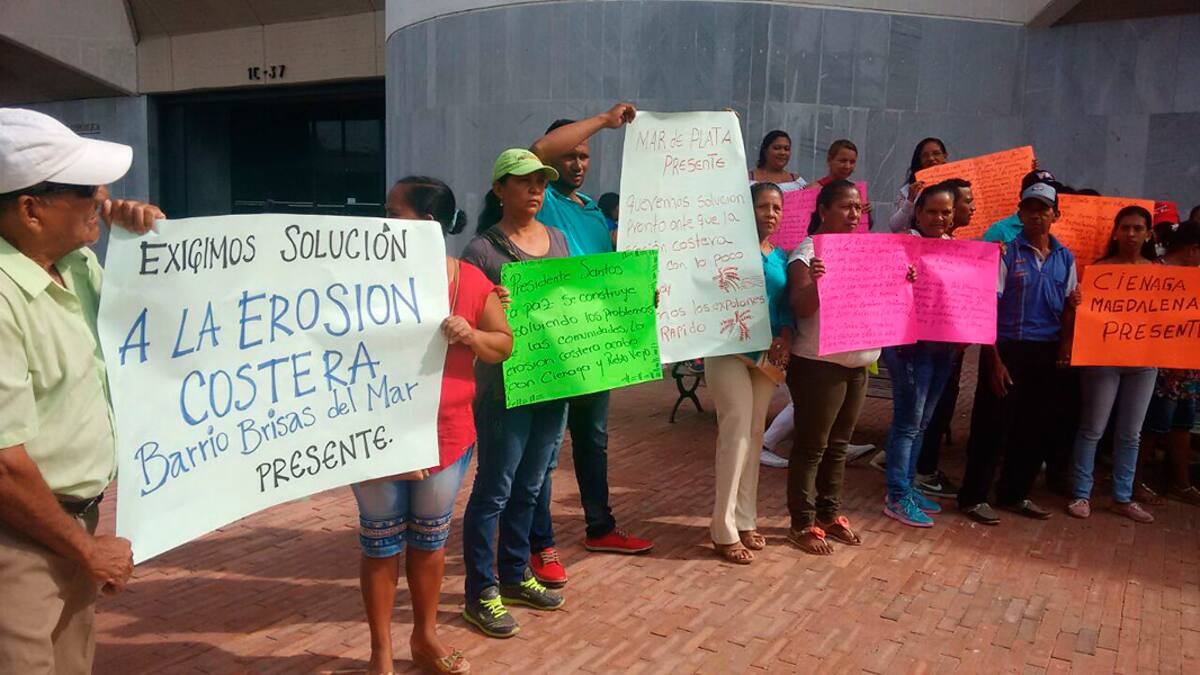 Pescadores y habitantes de la franja costera entre Ciénaga y Pueblo Viejo, afectados por el minitsunami del miércoles pasado, protestaron en Santa Marta por el silencio de las autoridades en la solución al problema de erosión costera.