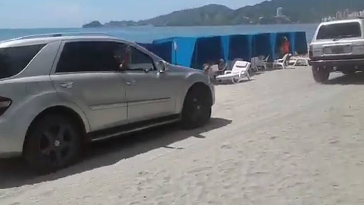 Los automotores se estacionaron en la playa, uno detrás del otro y a un costado de las carpas, sin el mínimo de respeto por los adultos y niños que allí se encontraban.