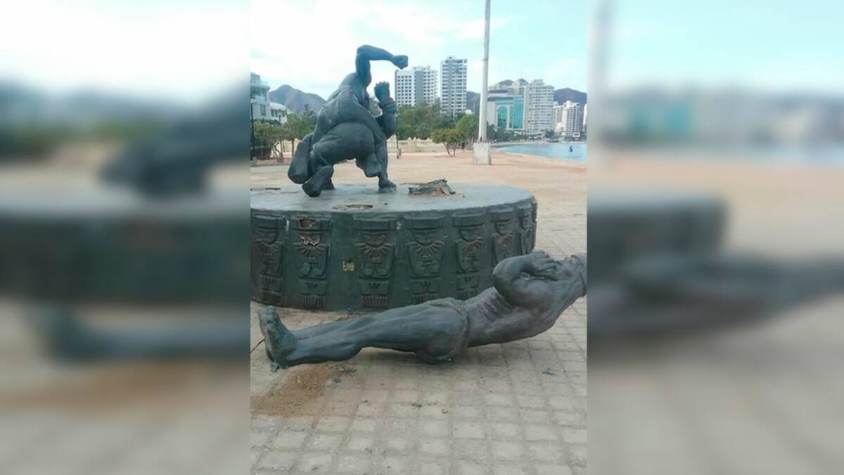 No fue un acto de mala fe, ni vandálico. Una de las esculturas en homenaje a la cultura Tayrona, ubicada en el camellón de la bahía de Santa Marta, se cayó por efectos de la brisa. Así lo explicó el gobierno Distrital luego de las especulaciones que se hicieron acerca de mala intención.