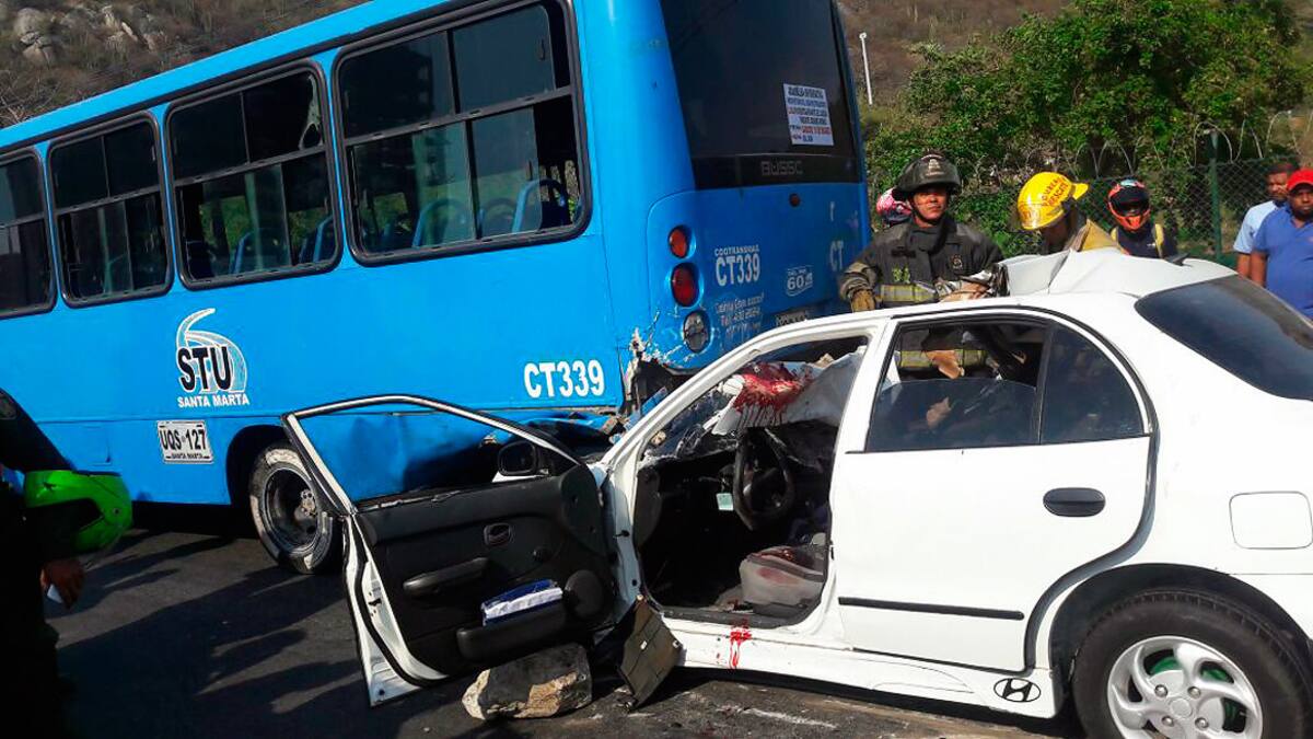 El choque de un automóvil con una buseta del servicio público urbano en el corredor turístico de Santa Marta, sector de Pozos Colorado, dejó una persona muerta y una herida de gravedad.