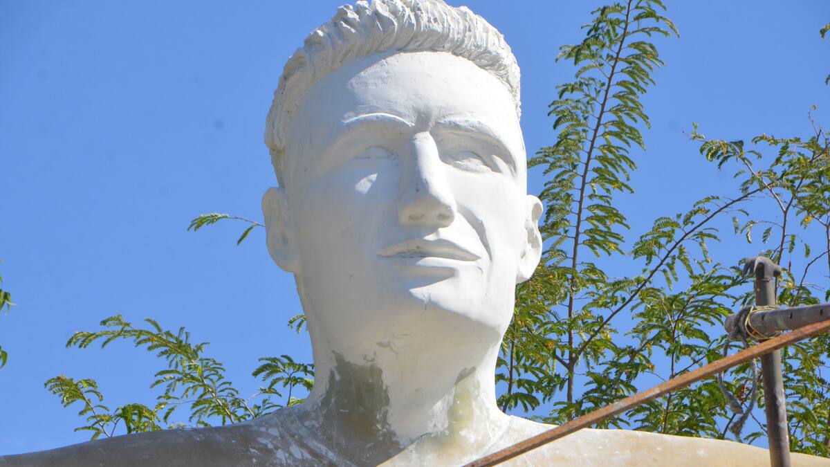 Sin conocerlo personalmente, solamente llevado por su fascinación, quiso hacerle con una gigantesca estatua, el homenaje que en el país nadie le ha tributado a este ídolo.