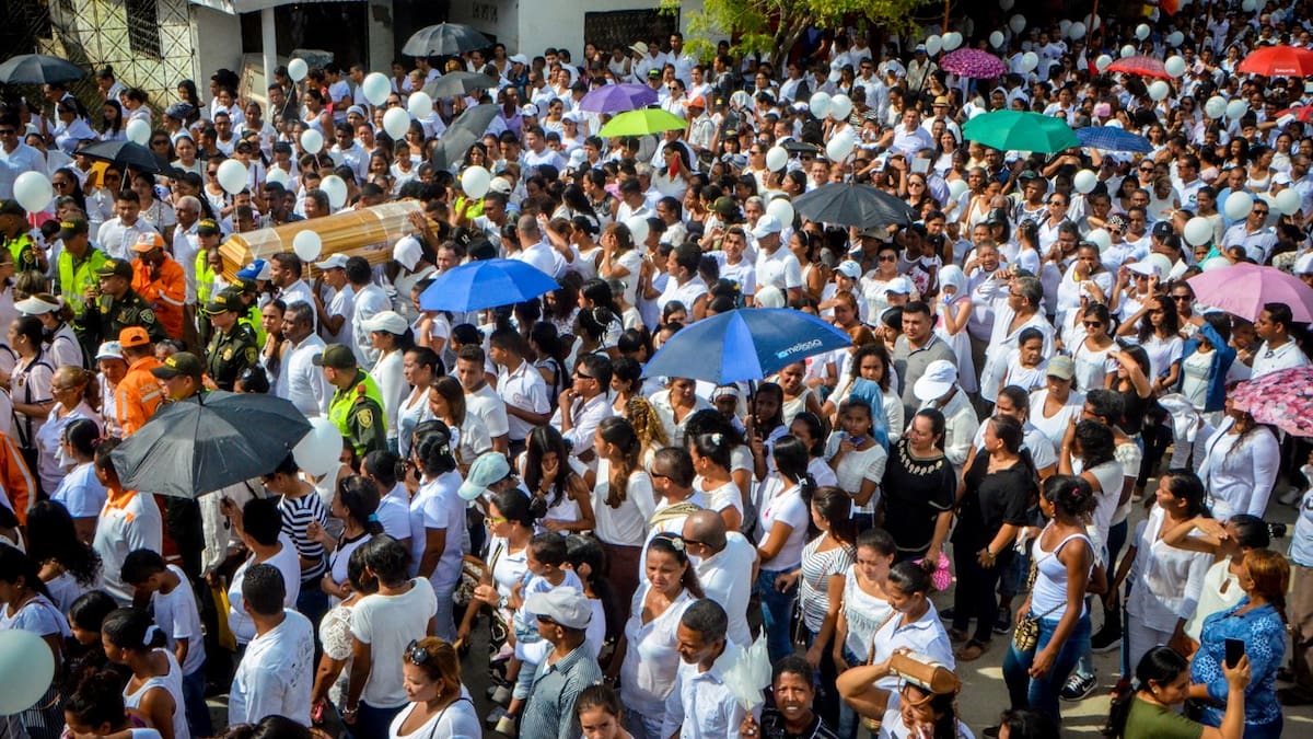 'A todos los fundanenses nos une el dolor, por eso abrazamos y acompañamos a los familiares de Génesis. Le pedimos a Dios que ningún niño en Colombia y el mundo pase por lo que vivió. Ella era un ángel, el brillo de los ojos de sus padres, pero ahora los cuida desde el cielo', dijo con la voz entre cortada Mariana García, una de las mujeres que llevaba globos blanco en la procesión.
