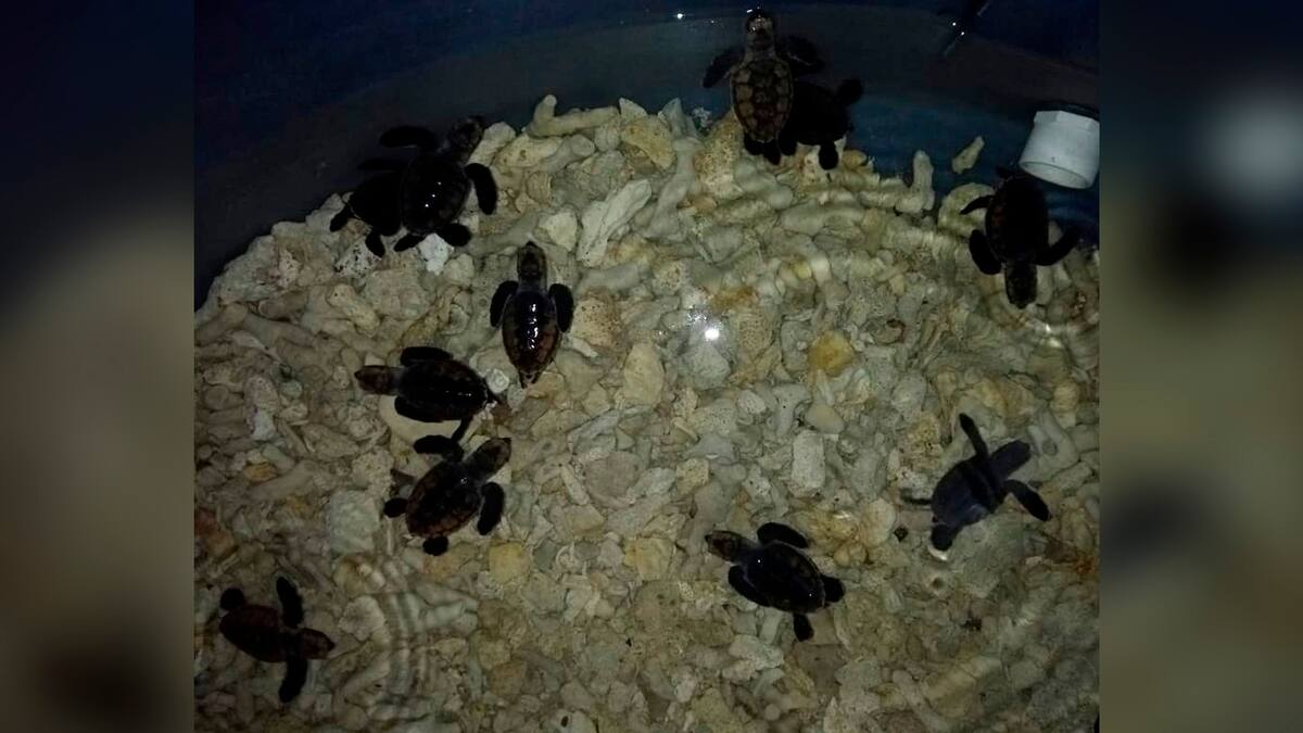 En el acuario de El Rodadero se produjo el nacimiento de 102 tortugas Carey, incubadas allí dos meses luego que su madre desovara en la playa de Pozos Colorado, debajo de una patrulla de la Policía Nacional.