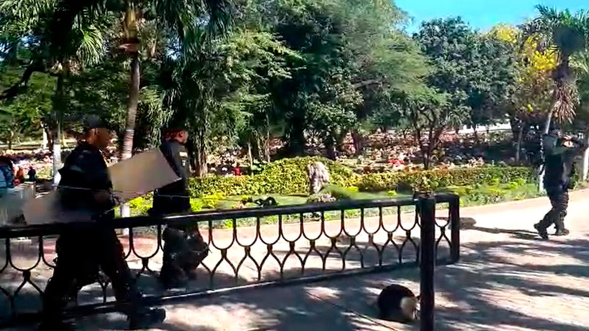 Un pelotón del Escuadrón Móvil Antidisturbios, Esmad, fue movilizado hacia el cementerio Jardines de Paz, de Santa Marta, para prevenir cualquier acto de desorden público durante las honras fúnebres del ex jugador Radamel García King.