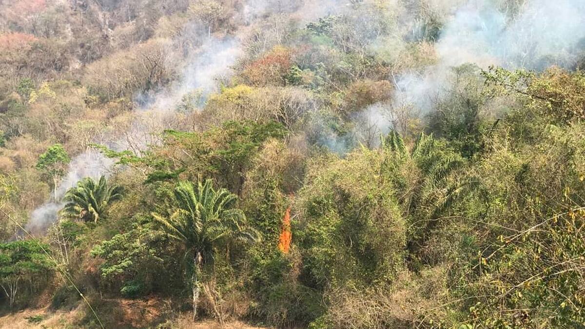 Un grupo especializado conformado por miembros del Comité Barrial Samario (Cobasa) de la Alcaldía de Santa Marta y del Cuerpo de Bomberos Voluntario de Santa Marta, trabajan de manera articulada para controlar y extinguir las llamas de un incendio forestal que se registra desde este martes, en la zona montañosa de la vereda Tigrera, jurisdicción de Minca, sur oriente de Santa Marta.