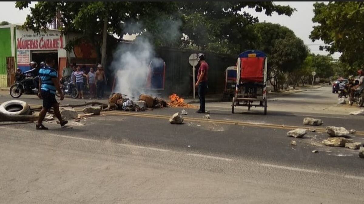 Residentes del barrio La Victoria, en el centro de Ciénaga (Magdalena), bloquearon con palos, llantas y piedras la Troncal del Caribe a la altura de la carrera 18, después de pasar tres días sin fluido eléctrico en sus hogares y sin que Electricaribe les diera solución a este problema.